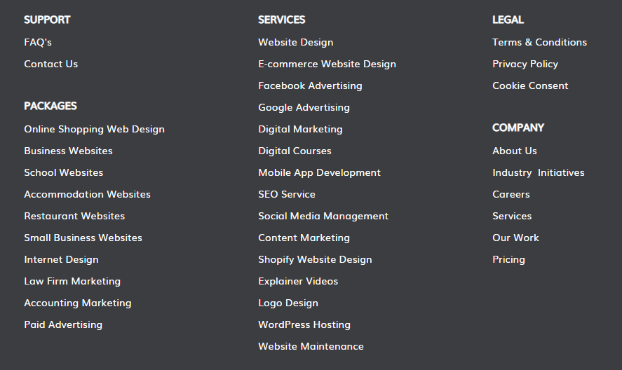 As you can see above, a footer design changes accordingly with respect to the type of business you are running. Hopefully, we have covered everything in this article about the important elements you can add to your website's footer. Do you have any more suggestions? Feel free to let us know.Digital Lime Green provides quality footer designs along with many other features with our Website Design Package . Feel free to contact us anytime! We provide quality solutions to your queries and problems at affordable prices in Cape Town, South Africa. To know more about our services, take a look here .Wishing you all the best!