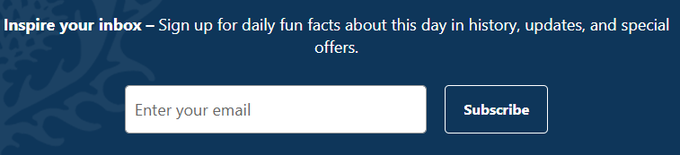 Call-to-actions on your footer can prompt visitors to try out your services, subscribe to your newsletter, donate, and much more. If you are looking forward to increasing the conversion rate on your website, a call-to-action button on your footer would help you out.For example, take a look at Britannica 's footer. They have a call-to-action for subscribing to their newsletter.