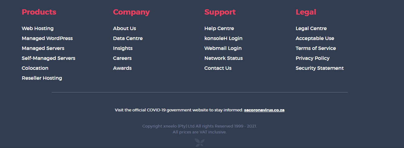 Xneelo has a simple, straight to the point website footer that is completely dedicated to a very organised sitemap. You can see how organised and pleasant it looks. It has all the necessary links you need to traverse around the website. An organised website footer like this is most favoured by index bots and hence, worth mentioning here.